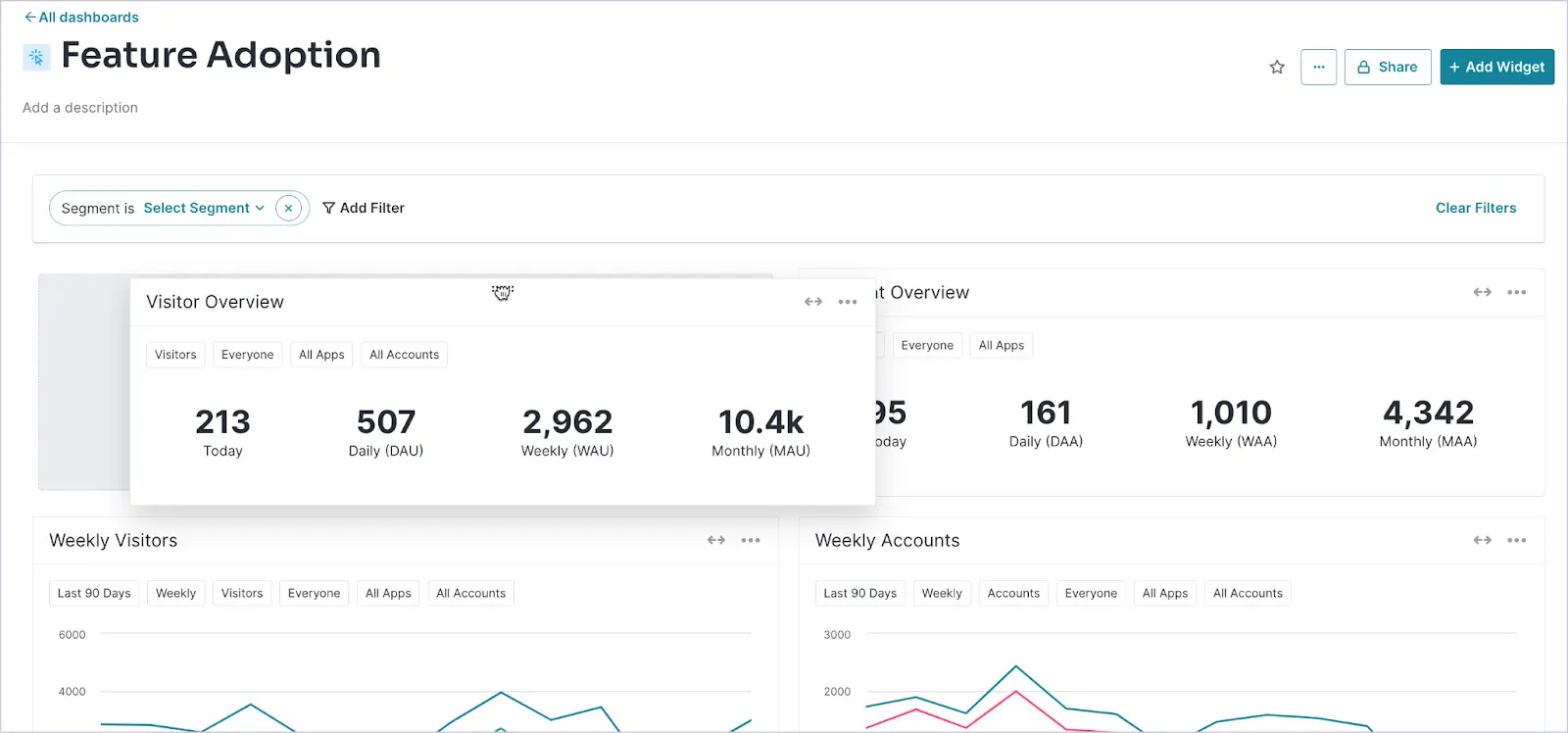 - Adoption dashboards with funnel and path analysis, plus A/B testing of experiences