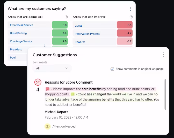 Medallia is a customer and employee experience management platform. In addition to surveys, it also offers in-app feedback and review features, and pulling in social mentions data to create a unified view of customer sentiment. Teams use it to aggregate and analyze online reviews and social feedback to boost satisfaction.
