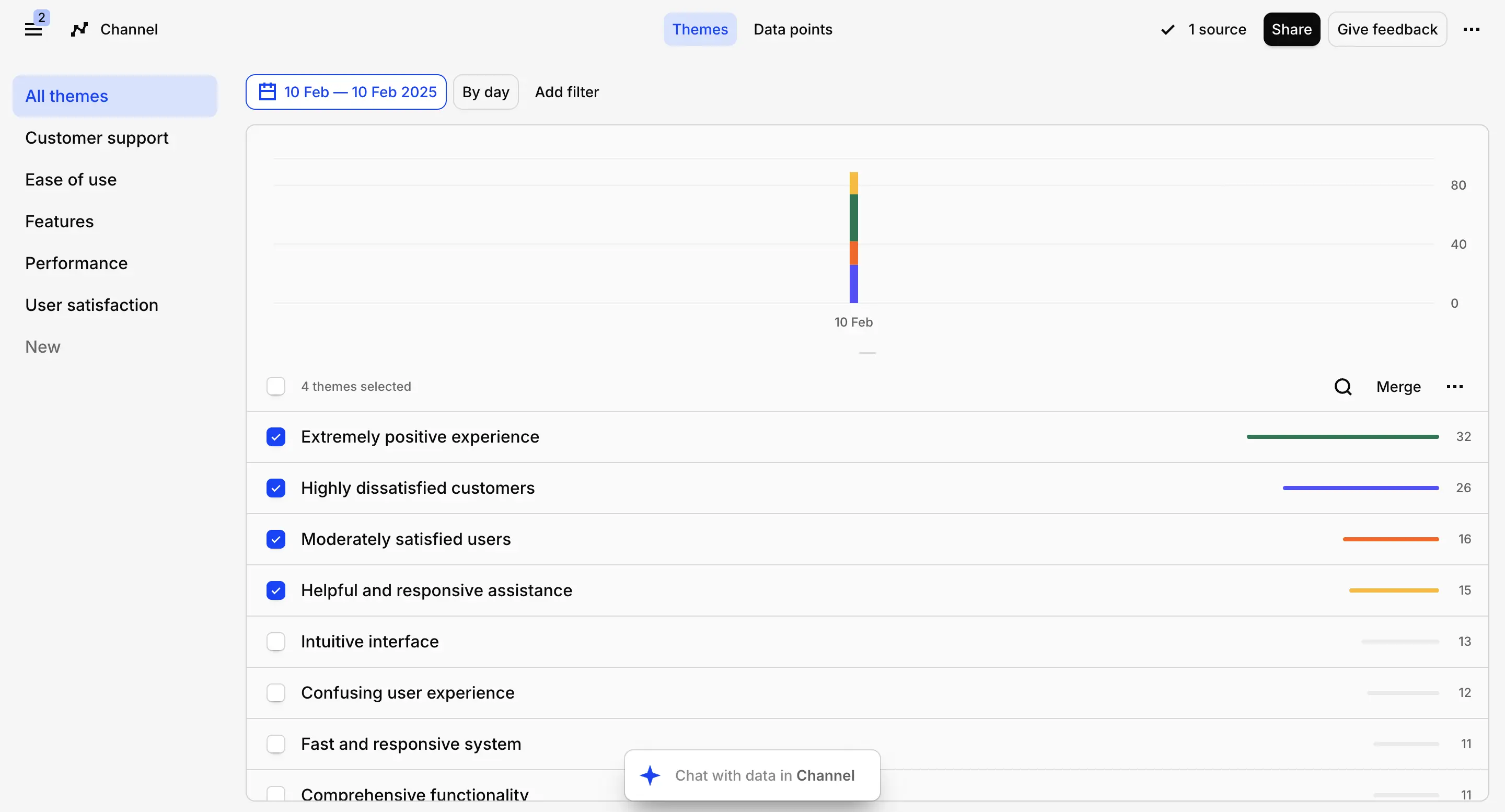 - generating AI answers in a dedicated chat that’s connected only to the centralized data and that can be filtered by source and time frame for answers to be specific and actually helpful,