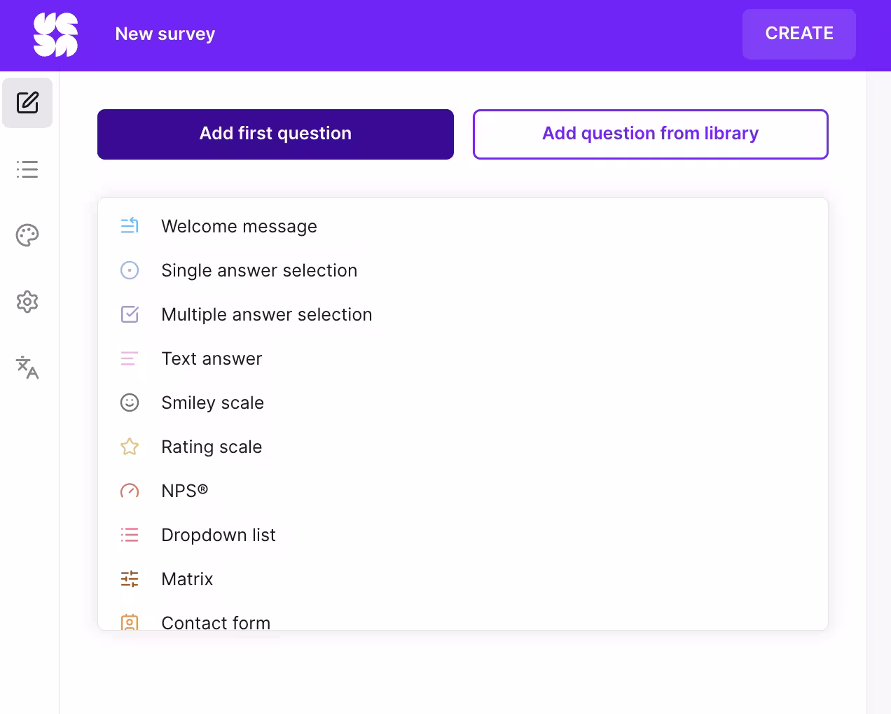 To demonstrate how it works in Survicate, we’re going to show you how to set up a survey from scratch so you can see the recommended flow.
