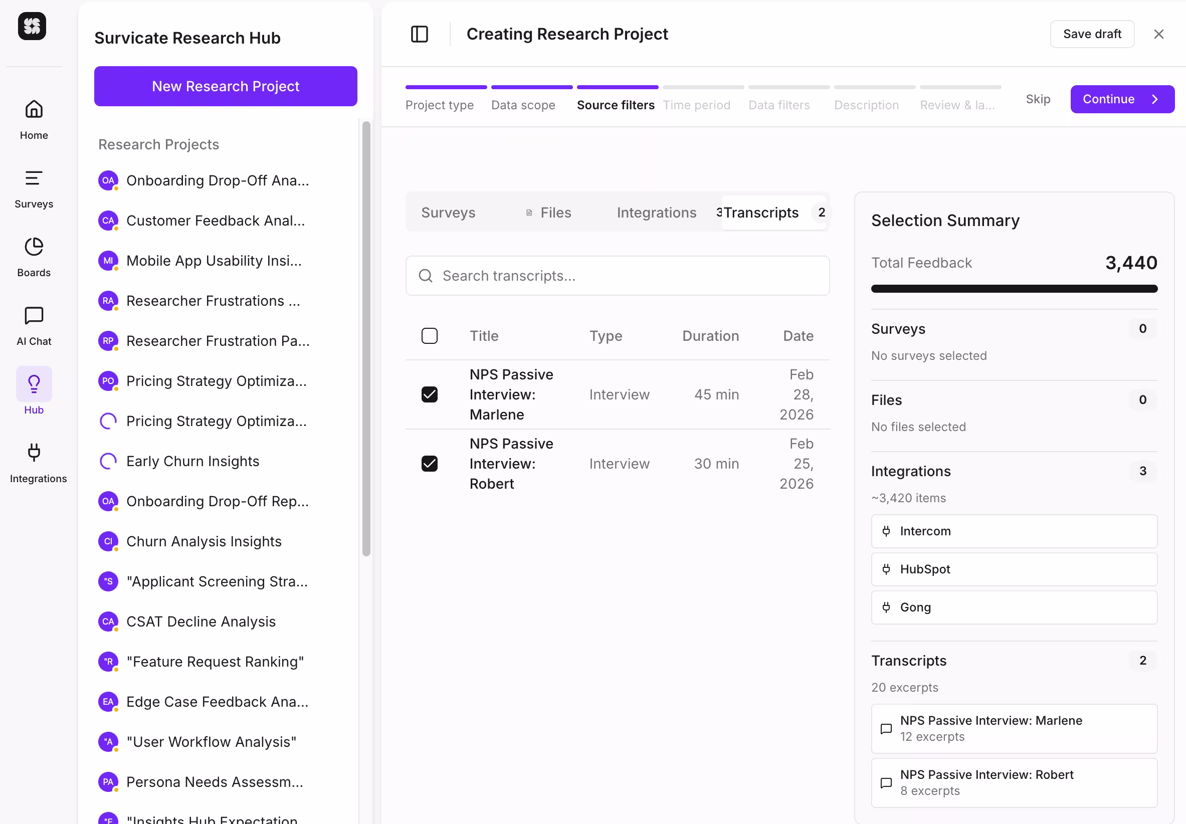 Step 6: You can analyze the incoming survey responses in Research Hub or via the AI chat.