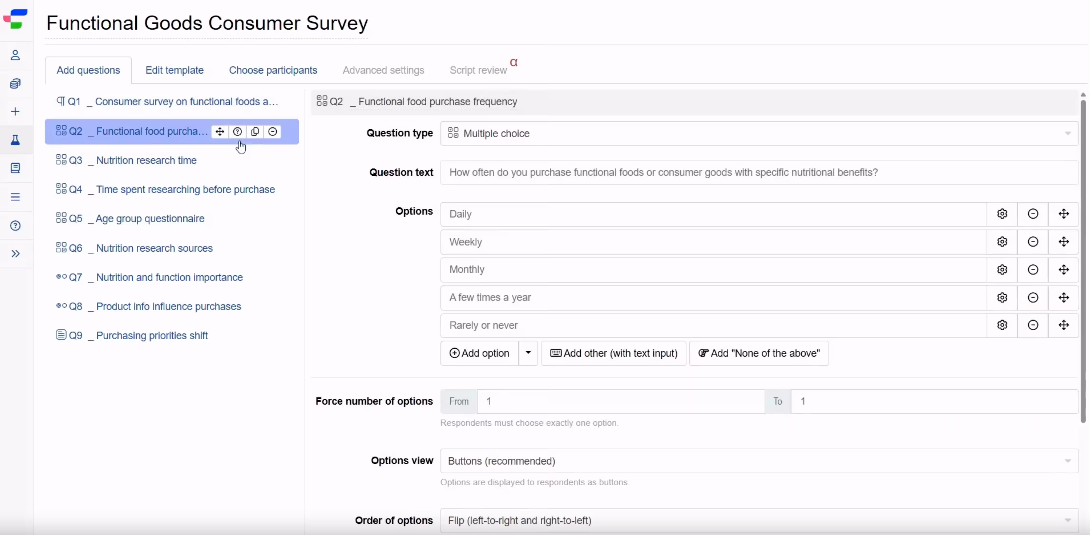 - Conversational style with smart logic, which adjusts the flow based on respondent’s answers