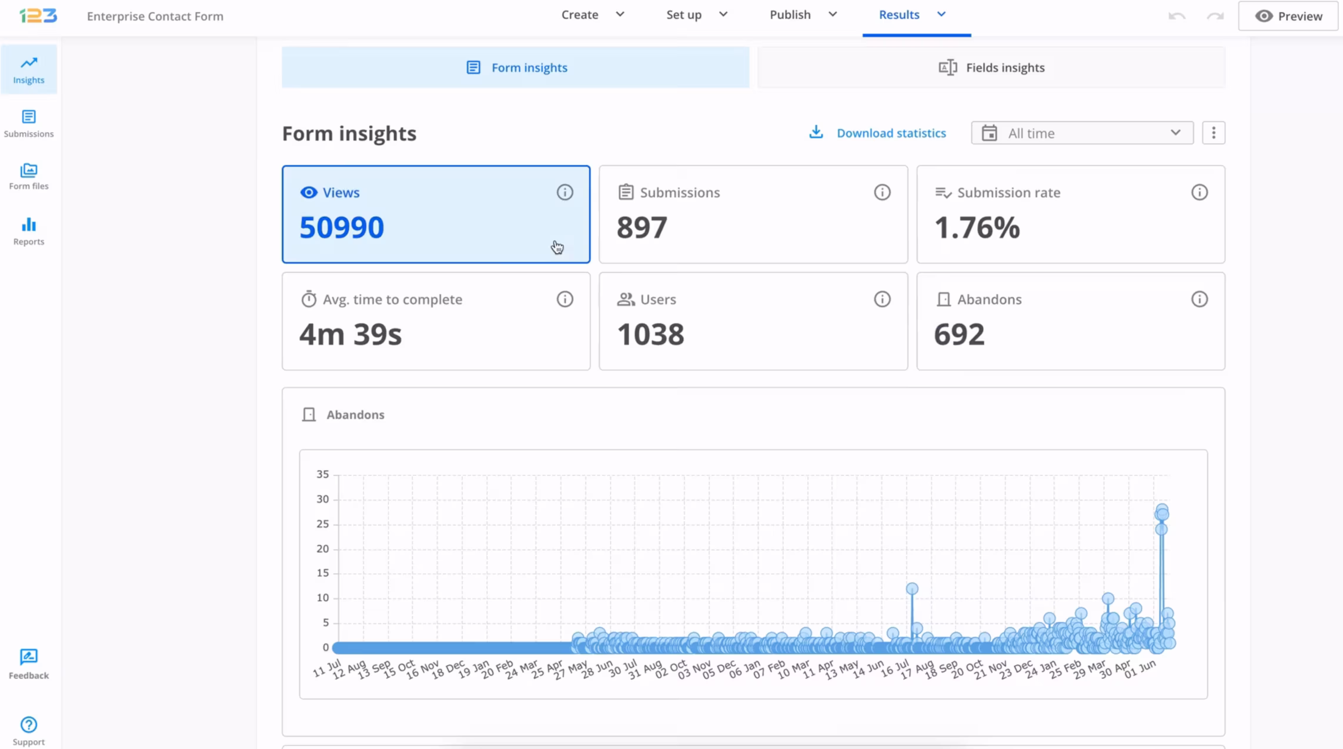 Involve.me has built-in funnel analytics, so you can see how people move through your funnel, where they drop off, and what answers they give. On higher plans, you can also pass UTM parameters and run A B tests, which is useful when you treat quizzes and calculators as performance assets, not just forms.
